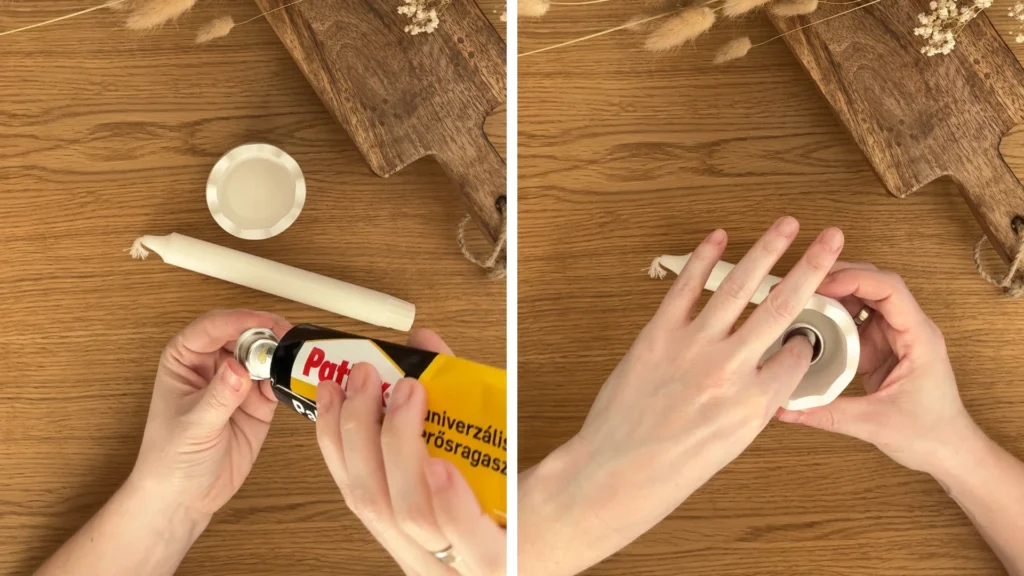 A gyertyatartó alapja Raysin öntőporból készül. Ez az anyag az egyik legjobb választás, ha fehér, sima, modern felületet szeretnél. Nem büdös, gyorsan köt, és nagyon szépen formázható.
