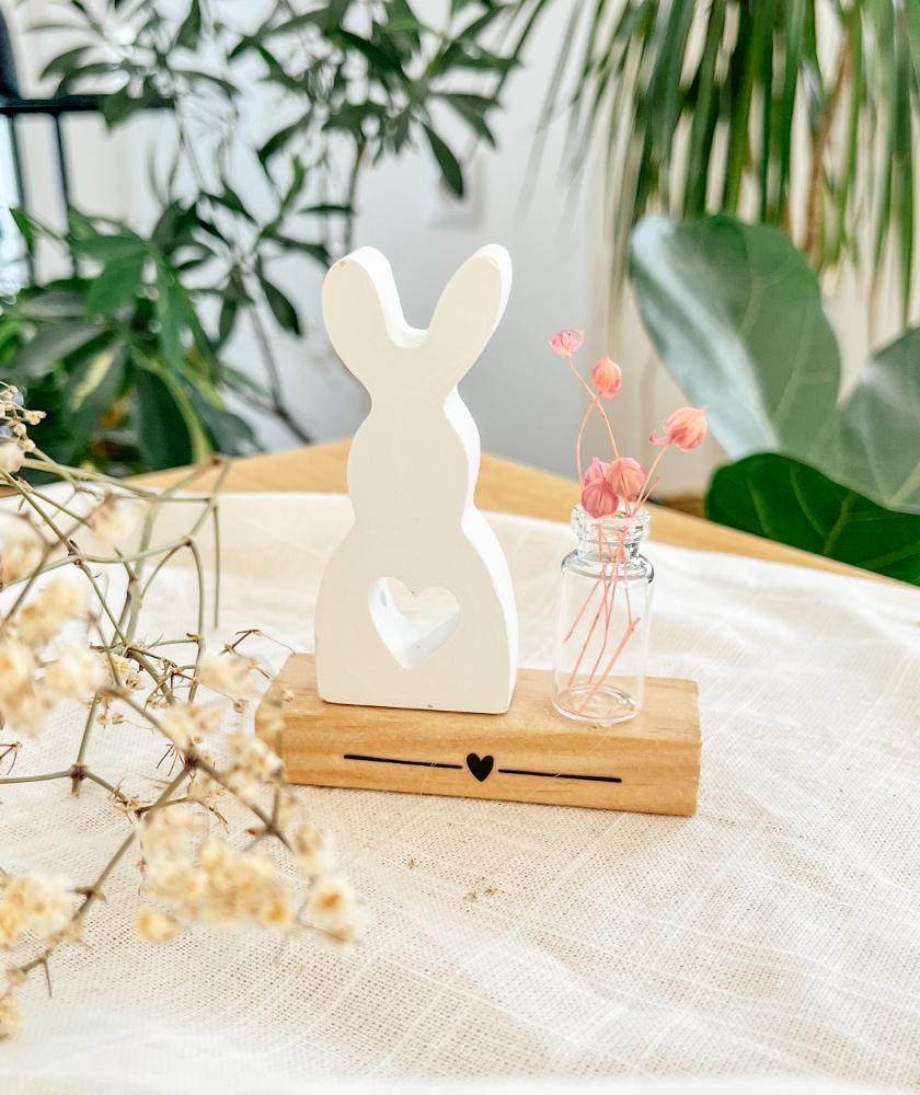 Azért szeretem ezt a projektet, mert gyorsan elkészül, mégis van benne több technika. Öntés, fa alap, UV DTF fólia, egy pici üvegcse virággal – külön-külön egyszerű elemek, együtt mégis egy jól eladható, ajándékozható nyuszis húsvéti dekoráció. Ráadásul nem csak magadnak készítheted, hanem akár tovább is gondolhatod.